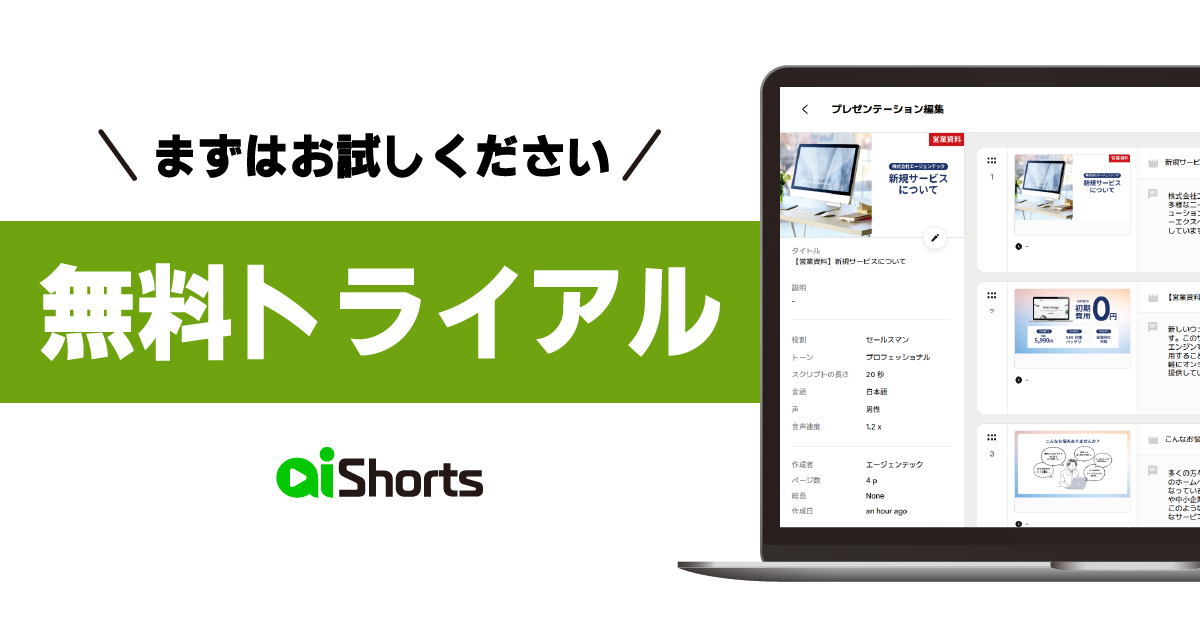 AI Shortsを活用することで、VBSを次のレベルへと進化させ、あなたの営業活動を大きく変えるチャンスとなるでしょう。まずは無料トライアルで一度お試しください。