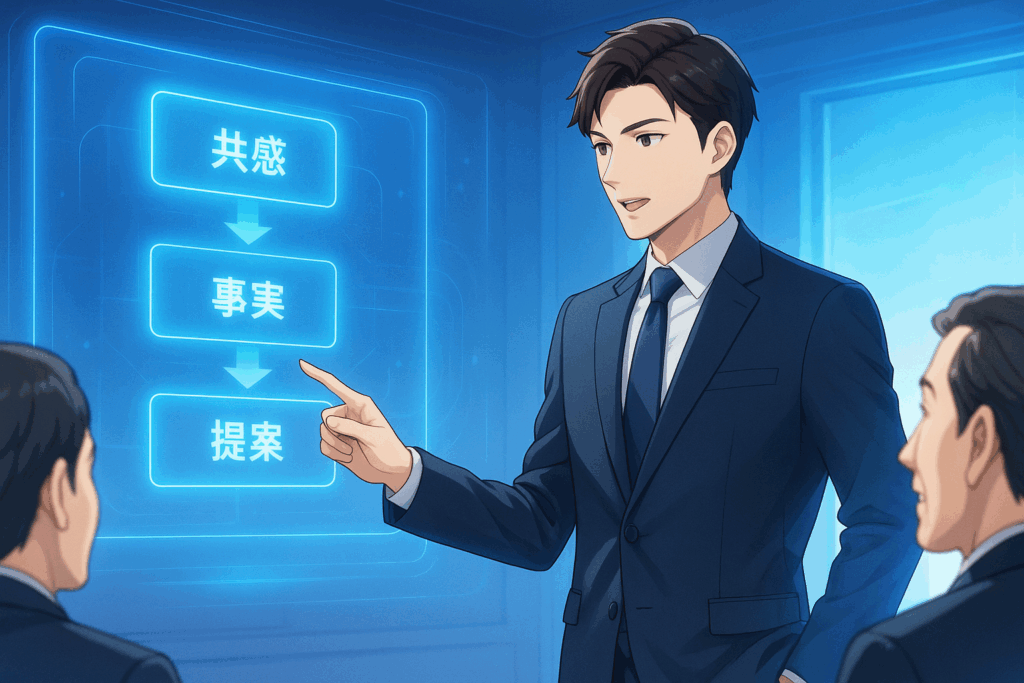 いきなり提案に入るのではなく、共感 → 事実 → 提案の流れをつくります。