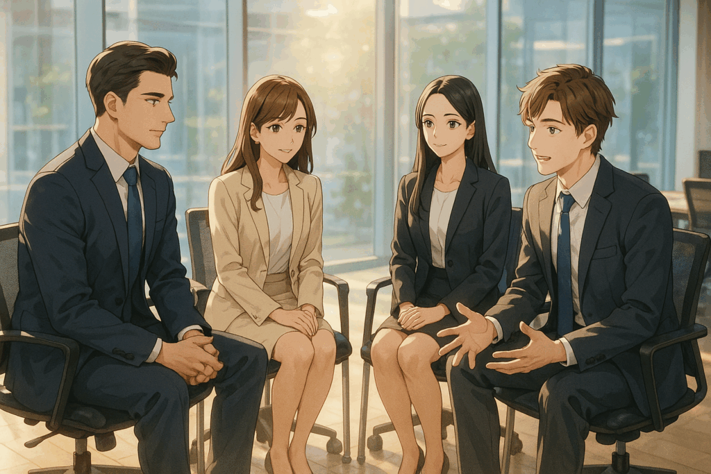 商談中に相手がうなずけば自分もうなずく、姿勢を合わせる──そんな小さな動きが信頼を育てます。
