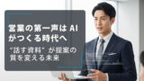 営業の第一声は、商談の方向性を決める“起点”です。これまでその質は個々の経験や準備量に左右され、組織として整えにくい領域でした。しかしAIが資料を読み込み、導入の流れを整理してくれるようになったことで、その入口は誰にとっても安定し、高いレベルでスタートできるようになります。ただし、AIがどれほど進化しても、顧客の反応を読み取り、その場で言葉を選び、信頼を築く役割は営業が担うべき核心部分です。AIは営業の価値を奪う存在ではなく、むしろ人が本質的な力を発揮できる土台を整える存在です。導入をAIが整え、価値を届けるのは人。これがこれからの営業組織が進むべき姿だといえます。