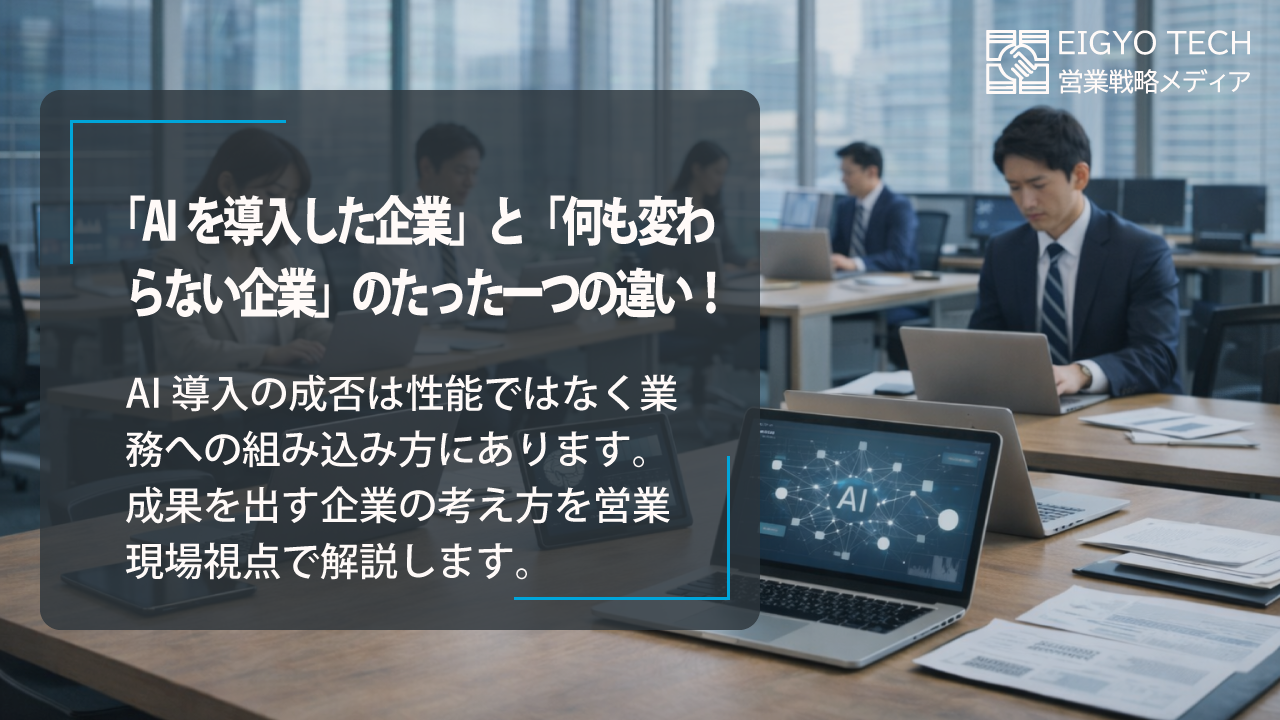 本記事では、「AIを導入した企業」と「何も変わらない企業」を分ける、たった一つの本質的な違いを、営業現場の構造に踏み込んで整理していきます。
