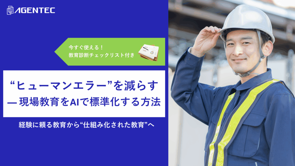“ヒューマンエラー”を減らす― 現場教育をAIで標準化する方法 2025.10.17 この資料でわかること 第1章:課題 ― なぜヒューマンエラーは減らないのか 第2章:方向性 ― “AIで標準化する現場教育”とは 第3章:効果 ― 教育DXがもたらす3つの改善 第4章:まとめ ― AIで築く“安全教育の新標準” 第5章:現場教育、あなたの会社はどこまで標準化できていますか? 貴社名 * お名前 * お名前カナ メールアドレス * 個人情報取扱い同意書に同意する 個人情報取扱い同意書